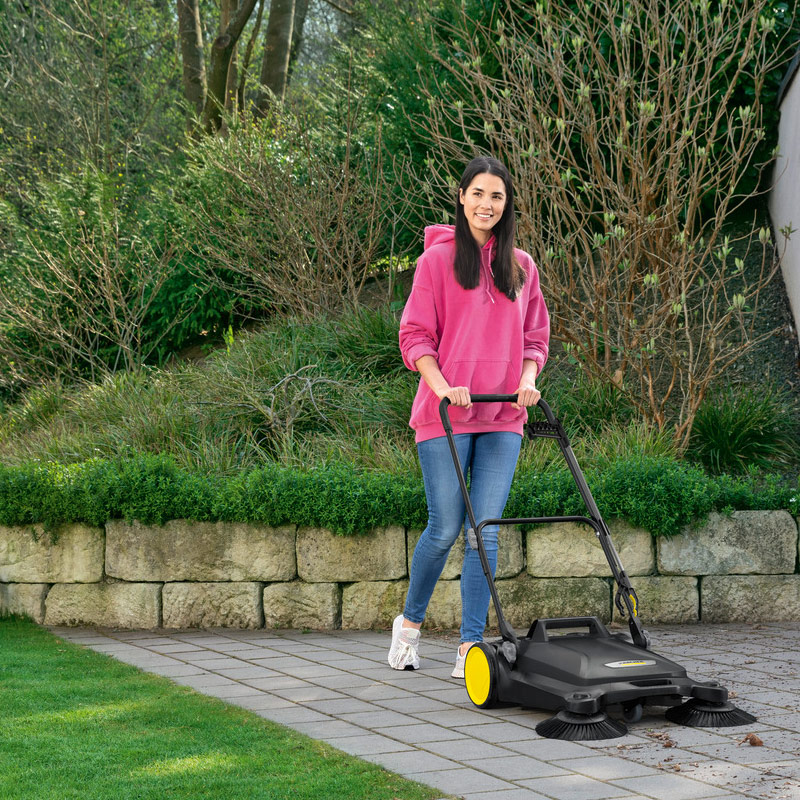 Подметальная машина Karcher S 4 Twin Go!Further для уборки малых площадей с большим контейнером (20 л) работает по принципу «совка для мусора», поэтому проста в эксплуатации. Отходящий воздух, поступающий вместе с пылью в контейнер за счет вращения щеток, проходит через фильтры пылеподавления.